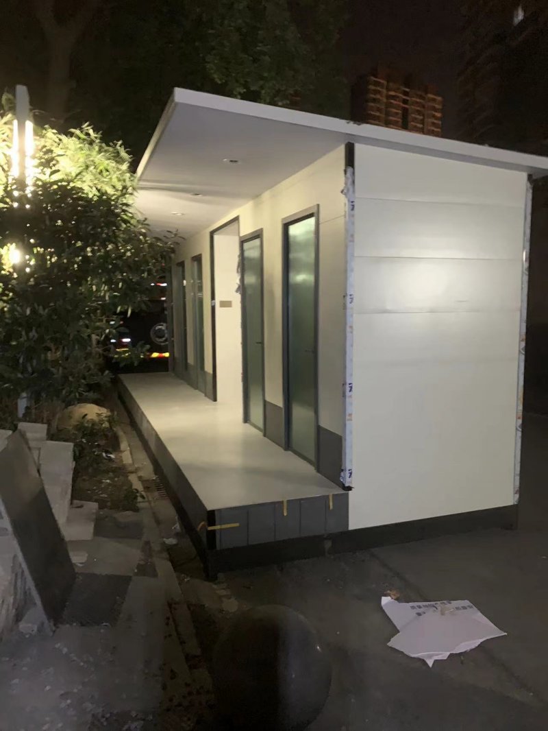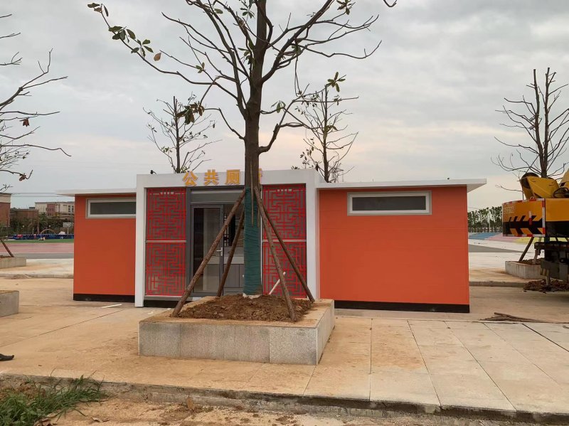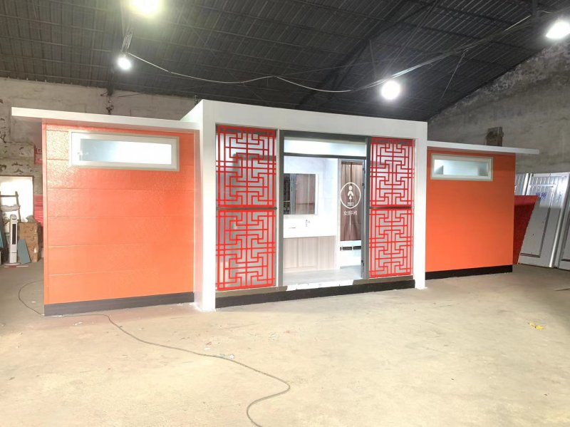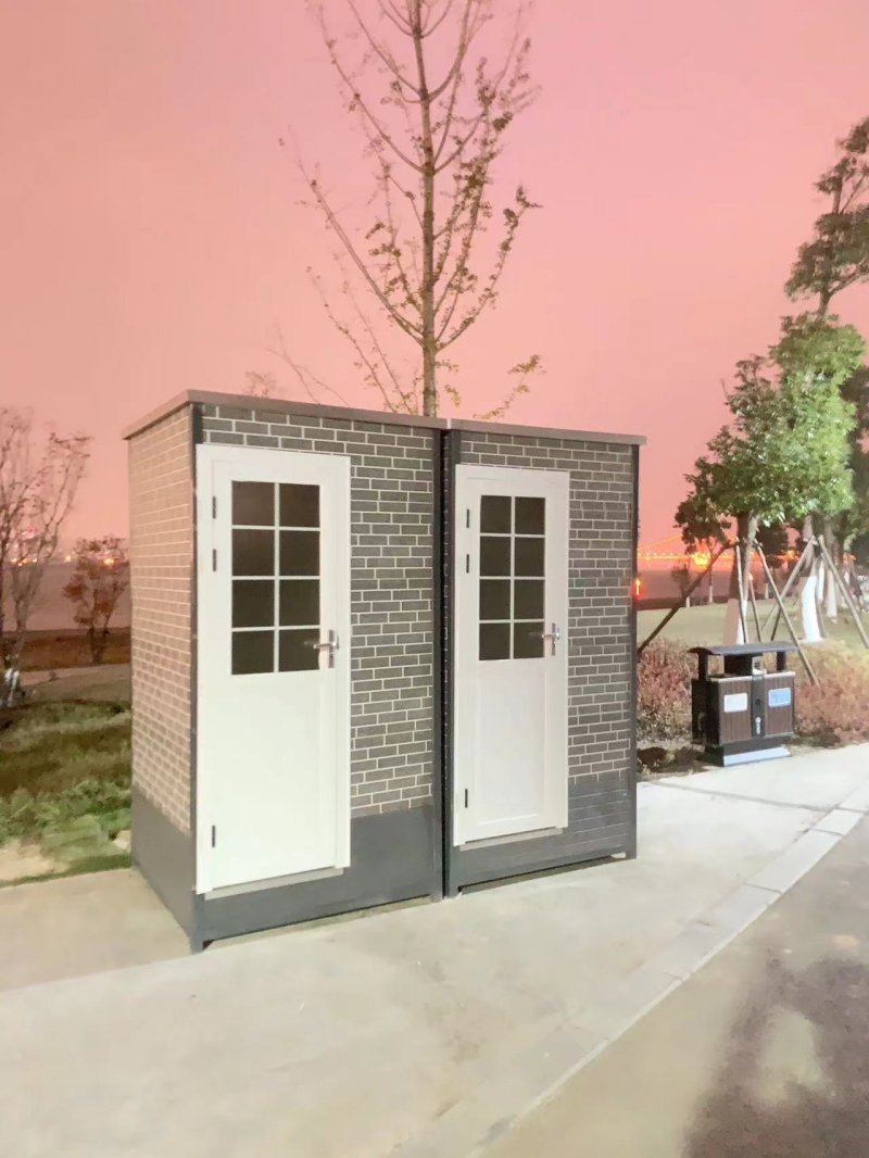 拼裝廁所;在廠里做好各個廁所部件,再到現(xiàn)場組裝在一齊,適合不易運輸?shù)拇笮蛶?。這座箱式廁所,女廁5個蹲位內(nèi)配工具間,男廁2個蹲位+2小便斗,第三衛(wèi)生間由殘疾馬桶、助力洗手盆和兒童馬桶、兒童洗手盆外加嬰兒臺等設(shè)施。廁所前后有窗,通風(fēng)采光,前部走廊裝有屋檐,防雨防曬。此廁所位于公路綠道邊,整體大氣,功能齊全,造型美觀,是一道難得的靚麗景觀!